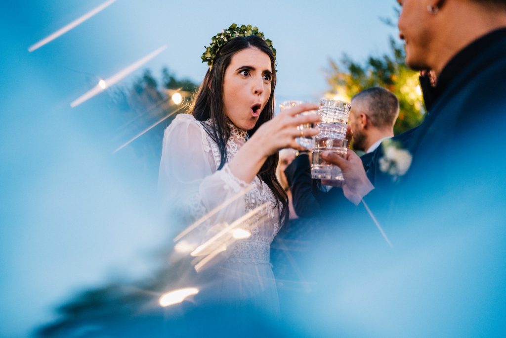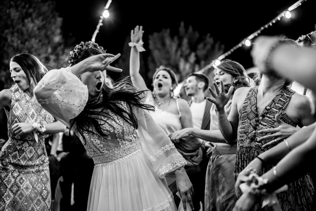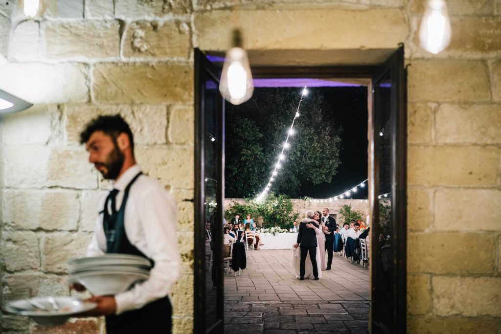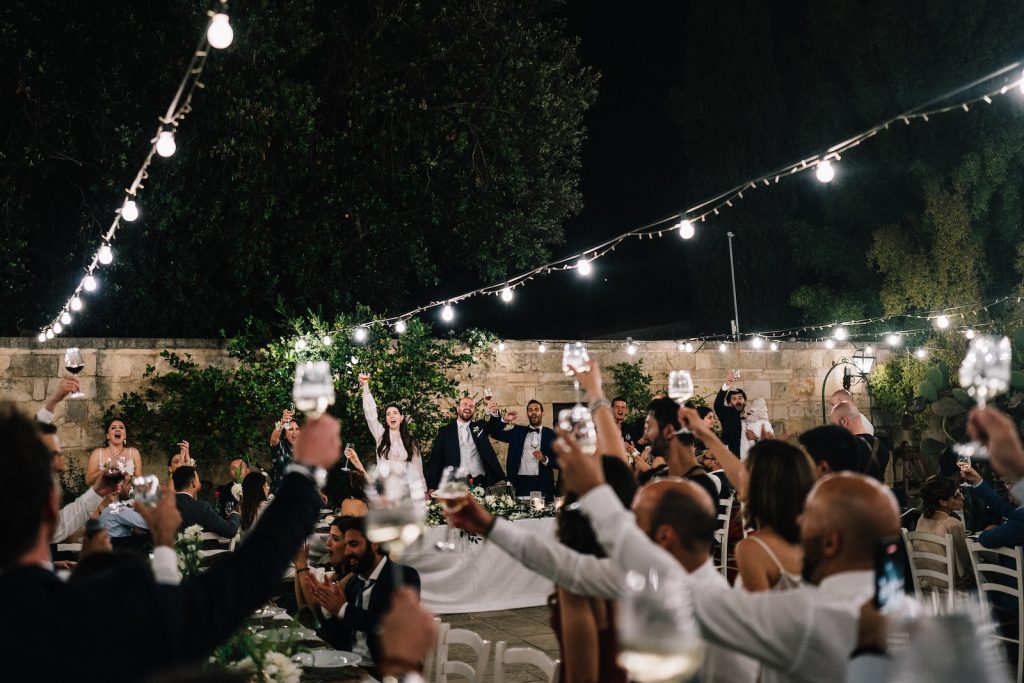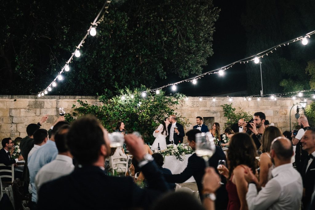 Dopo un aperitivo tra chiacchiere e brindisi, la cena si è trasformata presto in una festa travolgente. Gli sposi non si sono mai fermati un attimo: balli, risate, abbracci e momenti di pura gioia hanno riempito la corte della masseria. E noi, con le nostre macchine fotografiche, ci siamo sentiti esattamente nel posto giusto, al momento giusto.